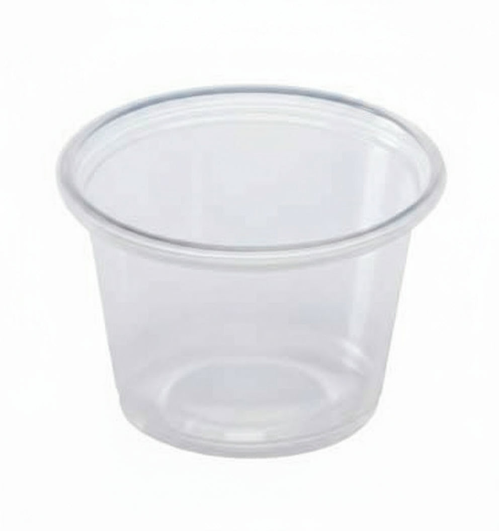 PP Portion Cup, Clear. A tiny, clear portion cup perfect for sauces, dressings, and samples. Its durable polypropylene (PP) material and clear design make it a versatile and reliable choice.