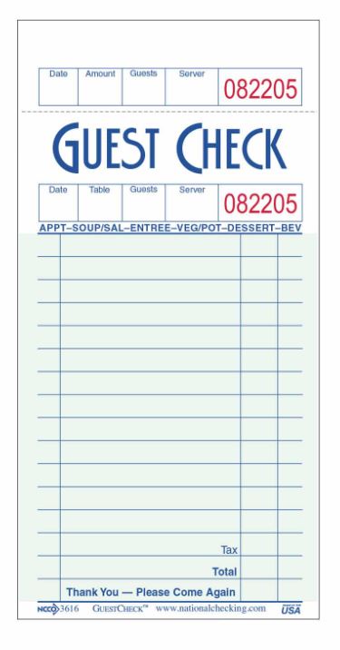 16 Lines, Guest Checkbook, 100 Checks per Book, Green. A standard one-part guest checkbook with 16 lines for detailed order-taking. The green color makes it easy to spot, and the booked format keeps checks organized.