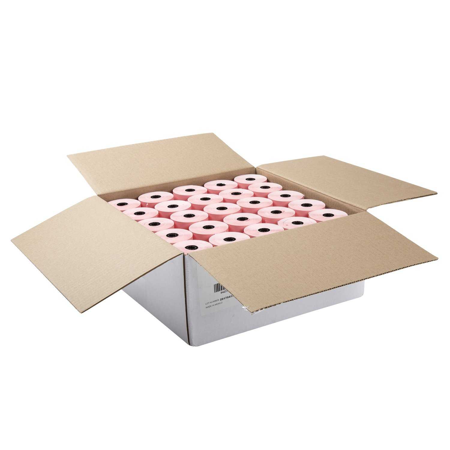 3" x 165' 1-Ply Pink Bond Paper Rolls ID Core 7/16". A single-ply pink bond paper roll for impact printers. The pink color is often used to differentiate duplicate copies or special orders, and the bulk case of 50 rolls ensures a long-lasting supply.