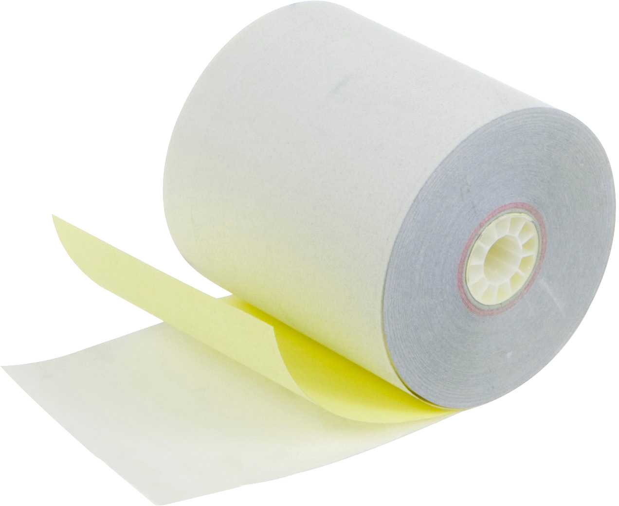 3" x 95' 2-Ply Carbonless Bond Paper Rolls. A two-ply, carbonless paper roll that creates an instant duplicate copy without needing carbon paper. The 95-foot length is a standard size for these types of rolls.