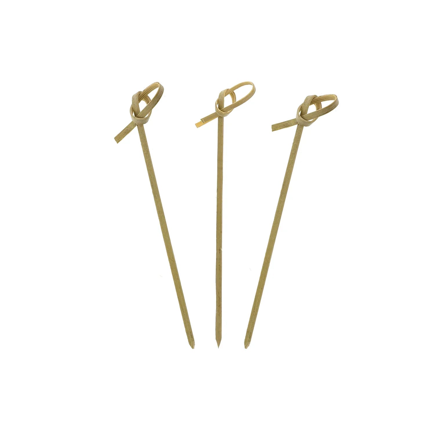 4" Bamboo Knot Pick Wrapped. A stylish and eco-friendly pick for garnishes, appetizers, or sliders. Made from bamboo, the knot design adds a touch of elegance to any presentation.
