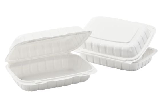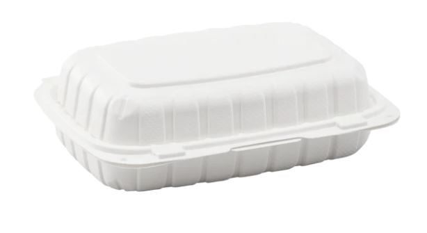 9" x 6" MFPP Hinged Container, Vented, White. Sustainable Strength for Hot Food. Upgrade your takeout with these Mineral-Filled Polypropylene (MFPP) containers. They offer the durability of plastic but use less material, making them a better choice for the environment. Vented for freshness.