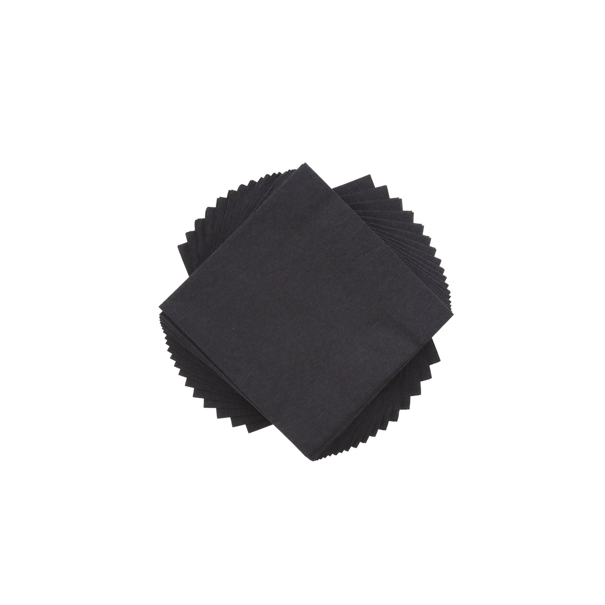 9.45" x 9.45" Premium Beverage Napkin, Black, 2-Ply. A premium, two-ply beverage napkin with a sleek black finish. The durable material and stylish color make it a great choice for upscale bars and events.