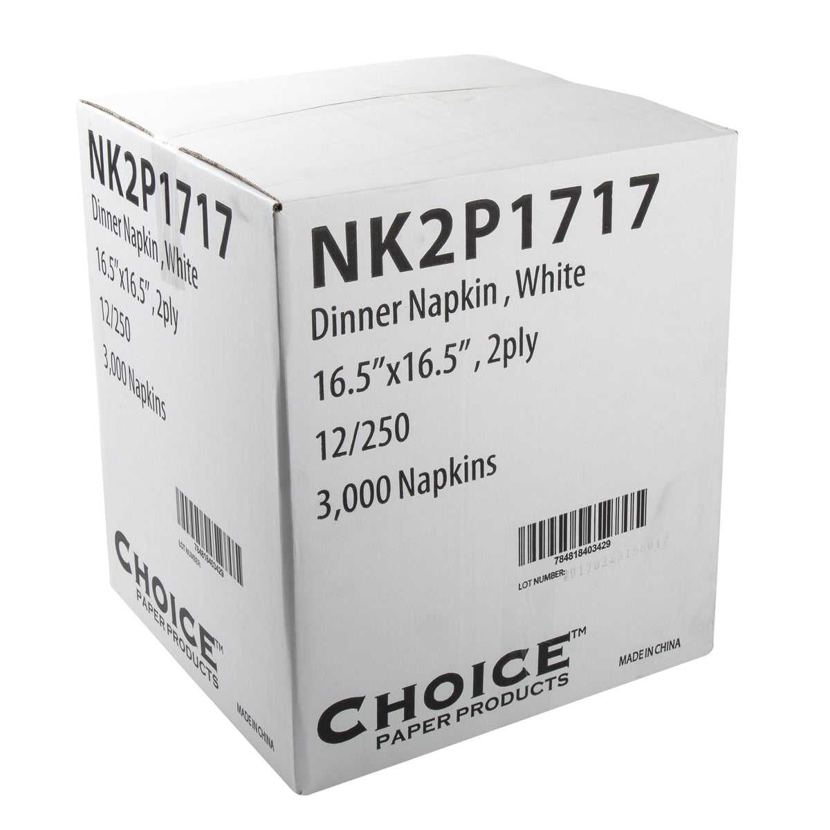 16.5" x 16.5" Dinner Napkin, White, 2-Ply, 1/4-Fold. A large, two-ply dinner napkin that provides a premium dining experience. The 1/4 fold design and durable paper are a great choice for high-end restaurants and events.