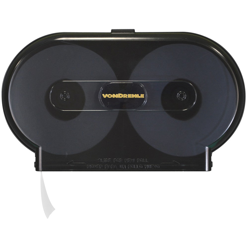 Twin Jumbo Bath Tissue Dispenser, Smoke Black. A high-capacity dispenser that holds two jumbo rolls of bath tissue, reducing the frequency of refills in high-traffic restrooms. The durable, smoke-black casing is both secure and stylish.