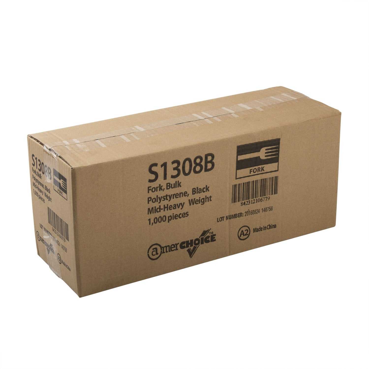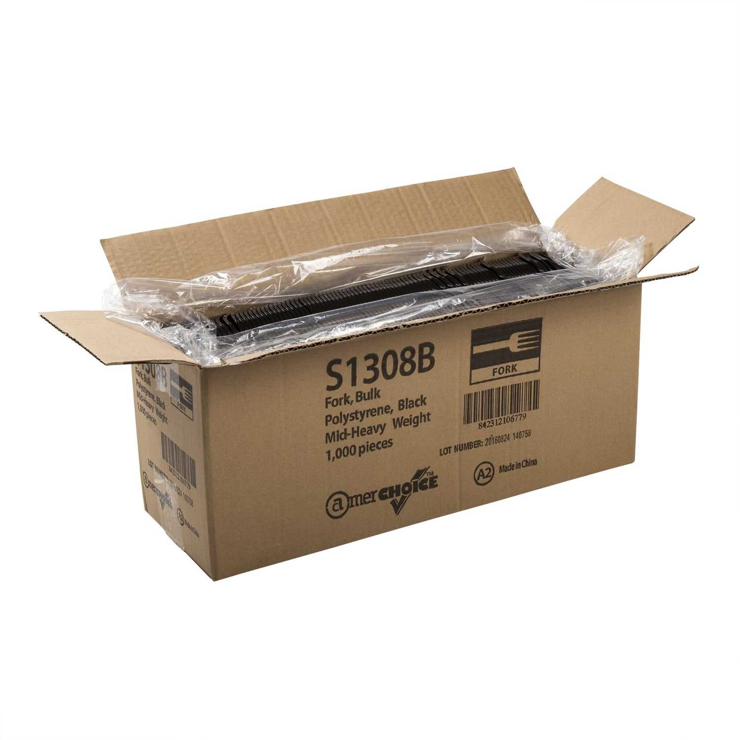 Fork, Mid-Heavy, Black, PP, Bulk. A mid-heavy weight fork that offers a good balance of durability and cost-effectiveness. The bulk packaging is ideal for high-volume use in restaurants and cafeterias.