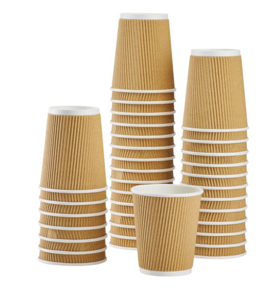 8 oz Paper Hot Cup, Ripple, Kraft. An insulated hot cup with a ripple texture that eliminates the need for a sleeve. The triple-wall design provides superior insulation, keeping drinks hot and hands comfortable.
