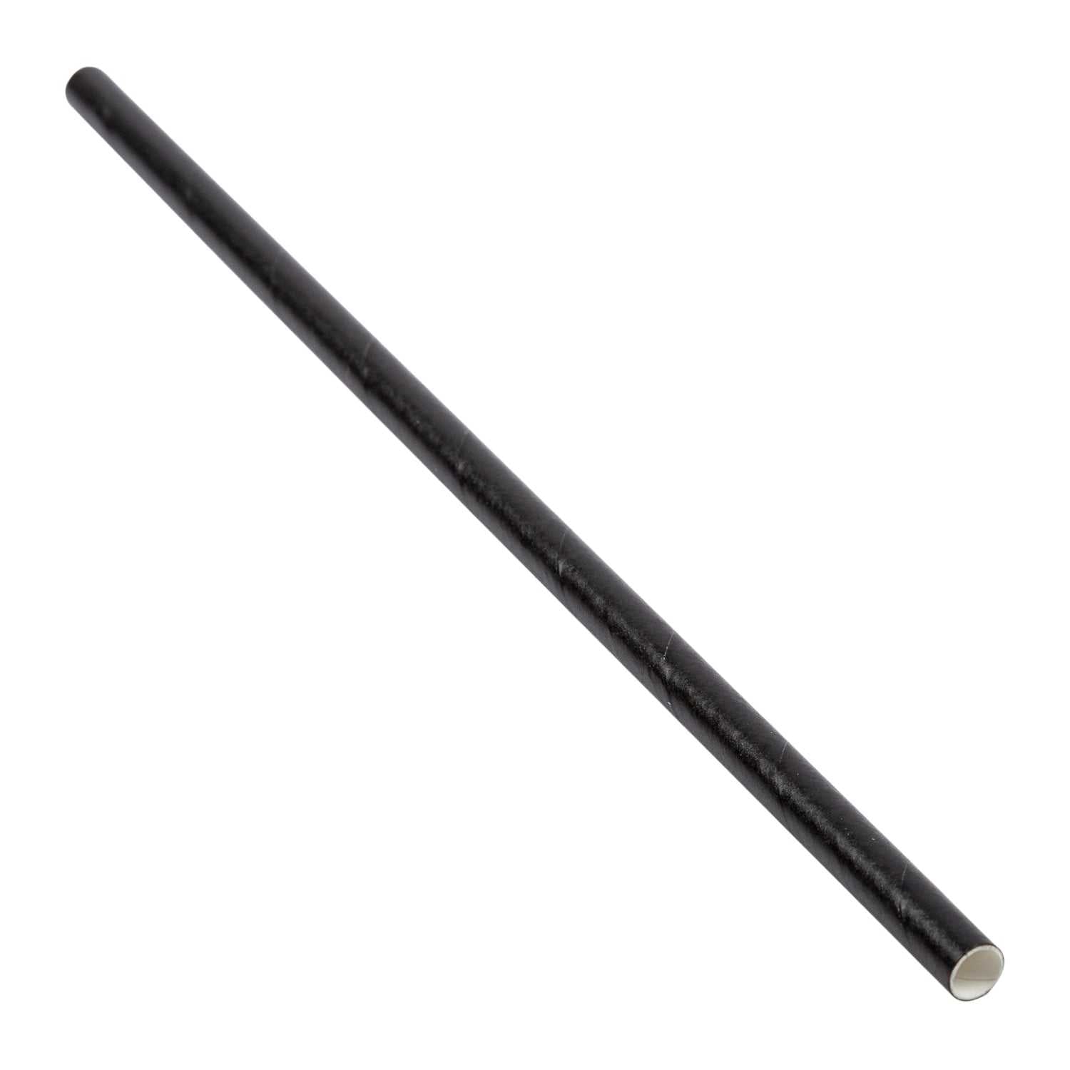 Jumbo Straw 7.75" Black, Paper, Unwrapped. An eco-friendly, unwrapped paper straw that is a great alternative to plastic. The standard length and classic black color make it a versatile choice for any cold beverage.