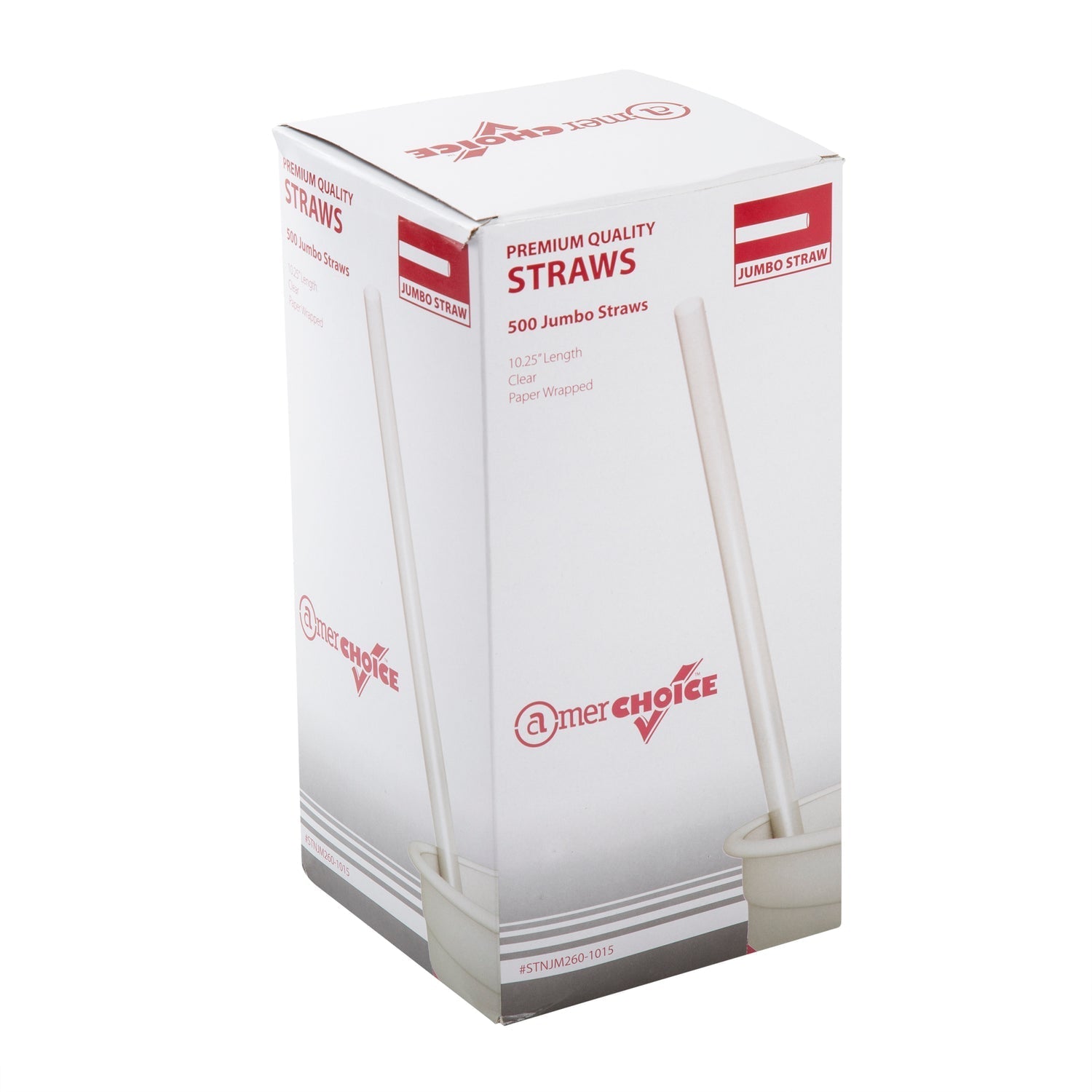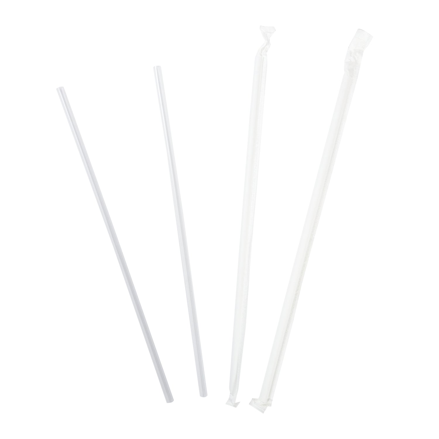 Jumbo Straw 10.25" Clear, PP, Wrapped. An extra-long jumbo straw that is individually wrapped for cleanliness. The durable polypropylene and clear design make it a versatile choice for tall cups and specialty drinks.