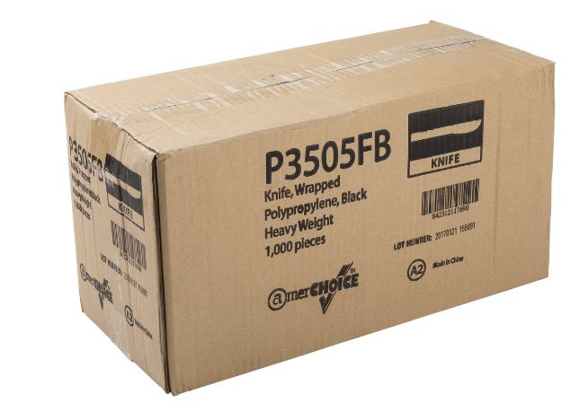 Knife, Heavy, Black, PP, Wrapped. A heavy-weight, individually wrapped knife that offers a clean, professional presentation. The durable material provides a reliable cut for a variety of meals, making it perfect for takeout.
