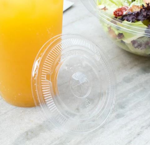 PET Lid with Straw Slot, Fits 32 oz PET Cup, Clear, 98mm. A clear PET lid designed for 32 oz cold cups. The straw slot and secure fit make it a reliable choice for large beverages, from iced teas to smoothies.