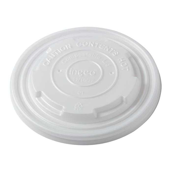Containers, Compostable. A versatile compostable lid that fits multiple sizes of hot food containers. It provides a secure, leak-resistant seal for 12, 16, and 32 oz containers.