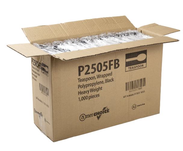Teaspoon, Heavy, Black, PP, Wrapped. A high-quality, individually wrapped teaspoon that offers a premium feel and superior durability. The heavy-weight polypropylene ensures it won't break or bend during use.