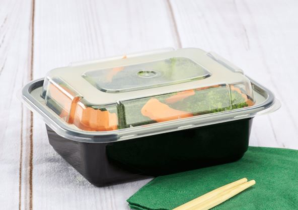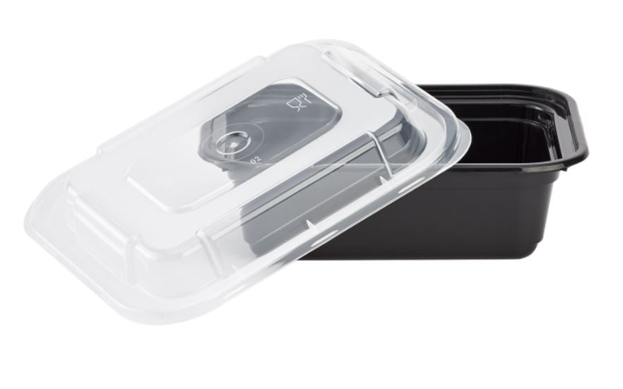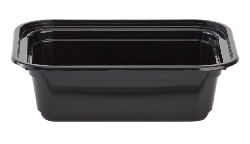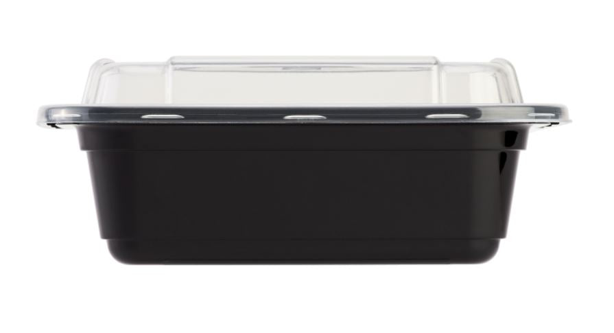 12 oz. Rectangle Container, Black Bottom and Clear Lid. Perfectly Portioned Sides and Desserts. A small, stackable rectangle container ideal for single-serve items like desserts, small salads, or side dishes. The secure lid ensures freshness and easy delivery.