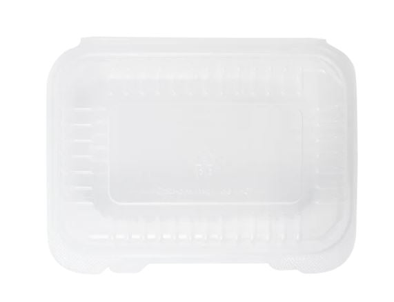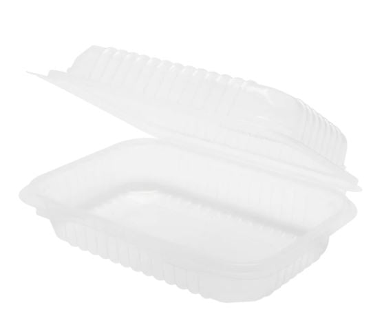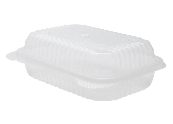 9" x 6" PP Hinged Container, Vented, Clear Bottom and Clear Lid. Crystal-Clear Visibility, Perfect Portions. A sturdy, all-clear hinged container that lets the quality of your food speak for itself. It’s the perfect size for standard entrees and is vented to prevent steam buildup, maintaining food texture.
