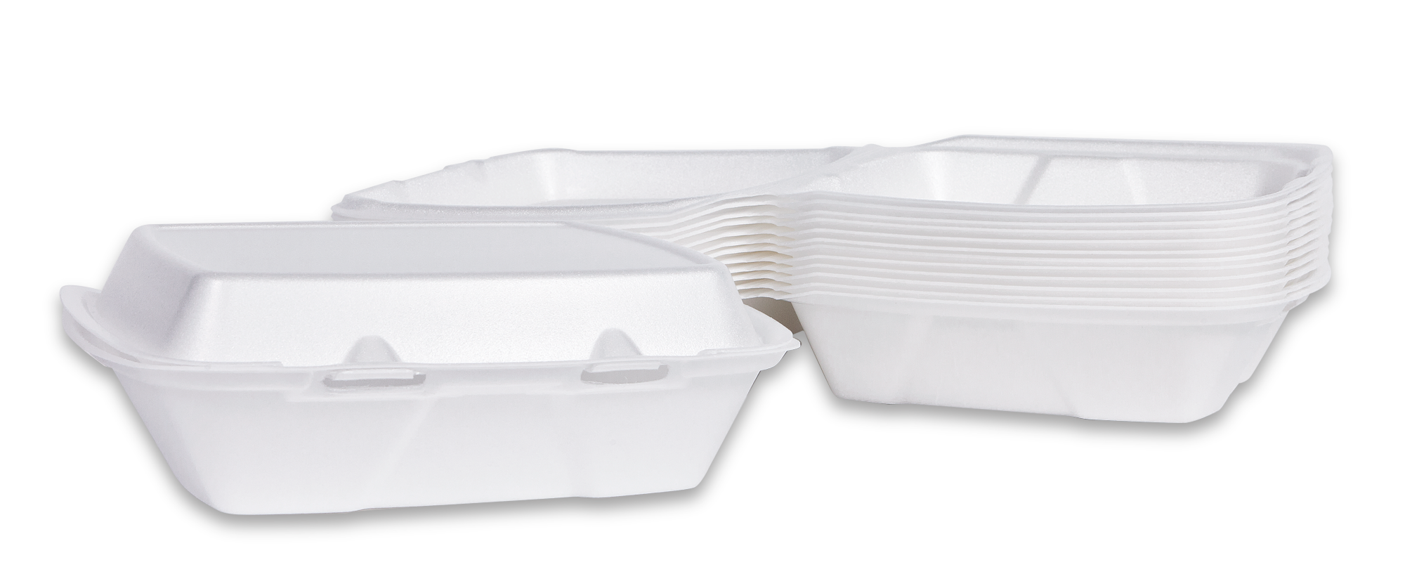 9" x 9" Foam Hinged Container, White. A large foam hinged container with a single compartment, ideal for main courses and entrées. The durable DART brand foam ensures food stays hot during transport.