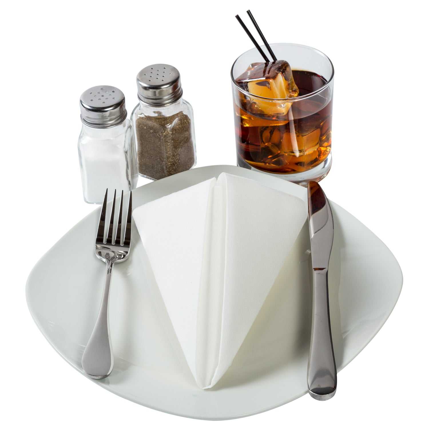 15" x 16" Premium White Airlaid Napkin, Linen Like. A large, premium airlaid napkin with a linen-like feel. The flat-pack design and durable material are a great choice for upscale dining and events.